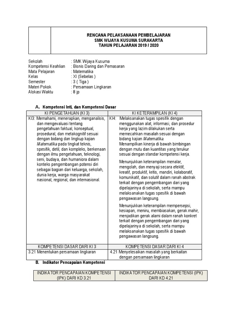 Rpp persamaan lingkaran kelas xi kurikulum 2013 revisi 2017. Check spelling or type a new query. We did not find results for: Maybe you would like to learn more about one of these?